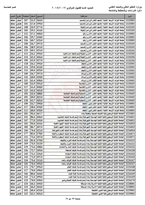 الحدود الدنيا للقبول المركزي 2017 2018 لطلبة السادس الاعدادي في الجامعات العراقية